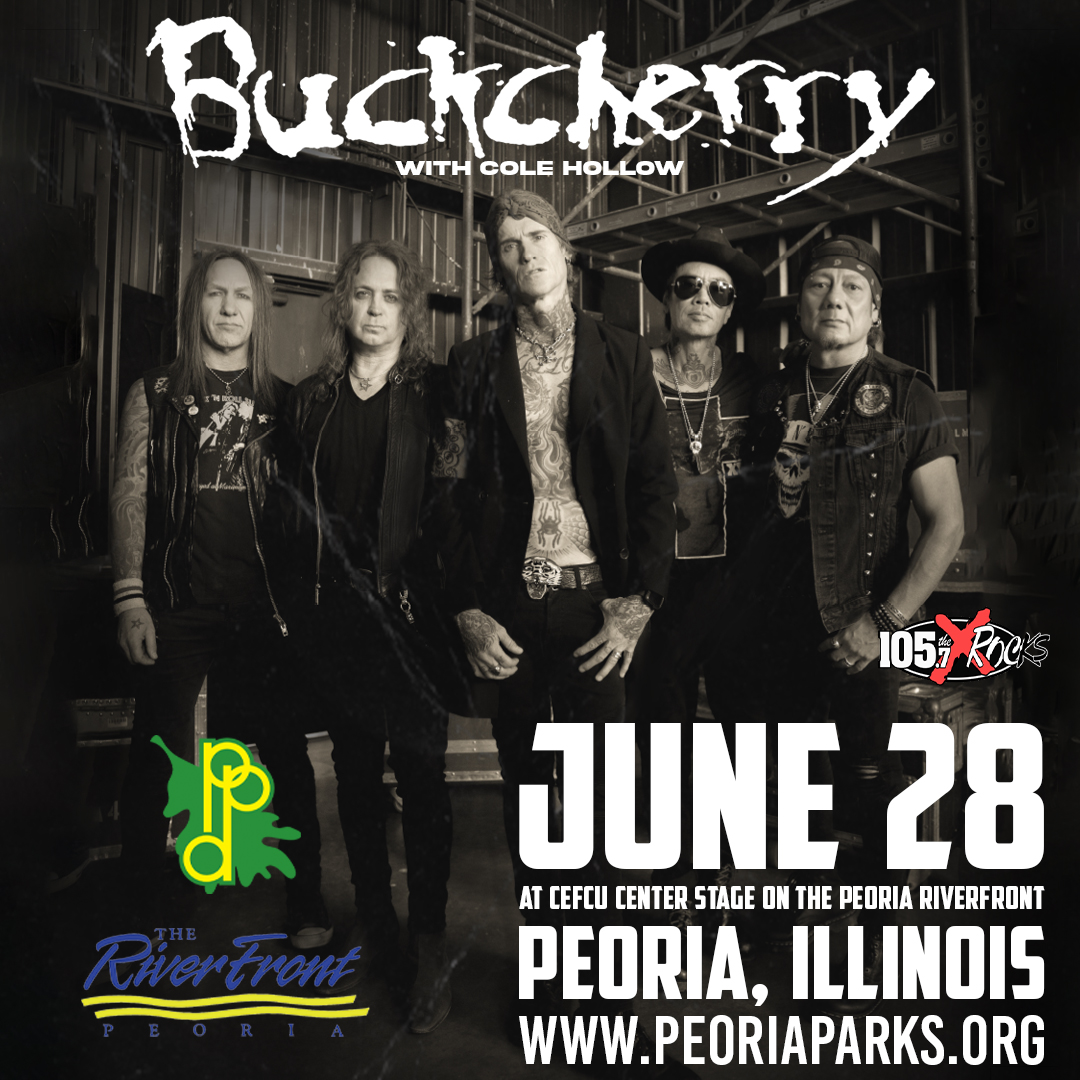 Get ready for a high-energy night of hard rock as Buckcherry takes the stage live at the Peoria Riverfront. Formed in Los Angeles and known for their gritty sound and electrifying live performances, Buckcherry has built a reputation as one of rock’s most exciting bands. With chart-topping hits like “Sorry,” and “Lit Up,” the band delivers a powerful mix of raw attitude, driving guitars, and unforgettable hooks that have made them a staple of modern rock for over two decades. Join us on the Peoria Riverfront Landing at the CEFCU Center Stage for an unforgettable night of hard-hitting rock and fan-favorite anthems performed by one of the genre’s most dynamic live bands.